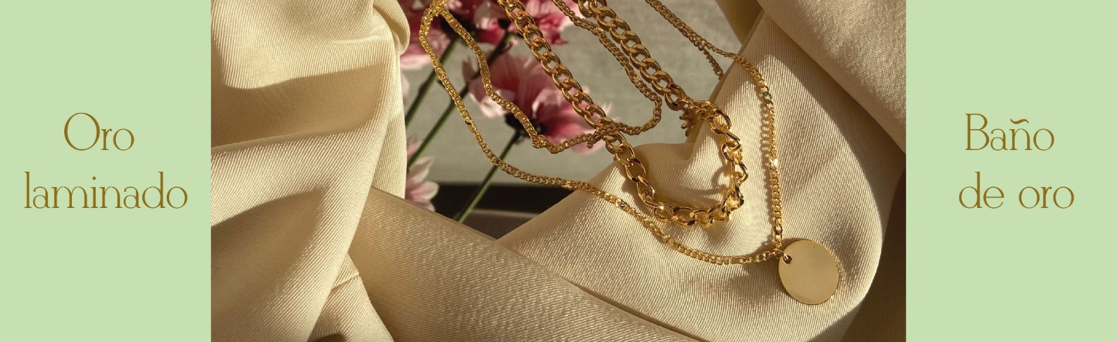 El oro laminado se crea uniendo mecánicamente una capa de oro a una capa de metal base. Es de excelente calidad, por lo que se puede usar incluso en la alberca o el mar sin que despinte o se caiga la capa de oro. Y lo mejor, es más accesible que el oro.